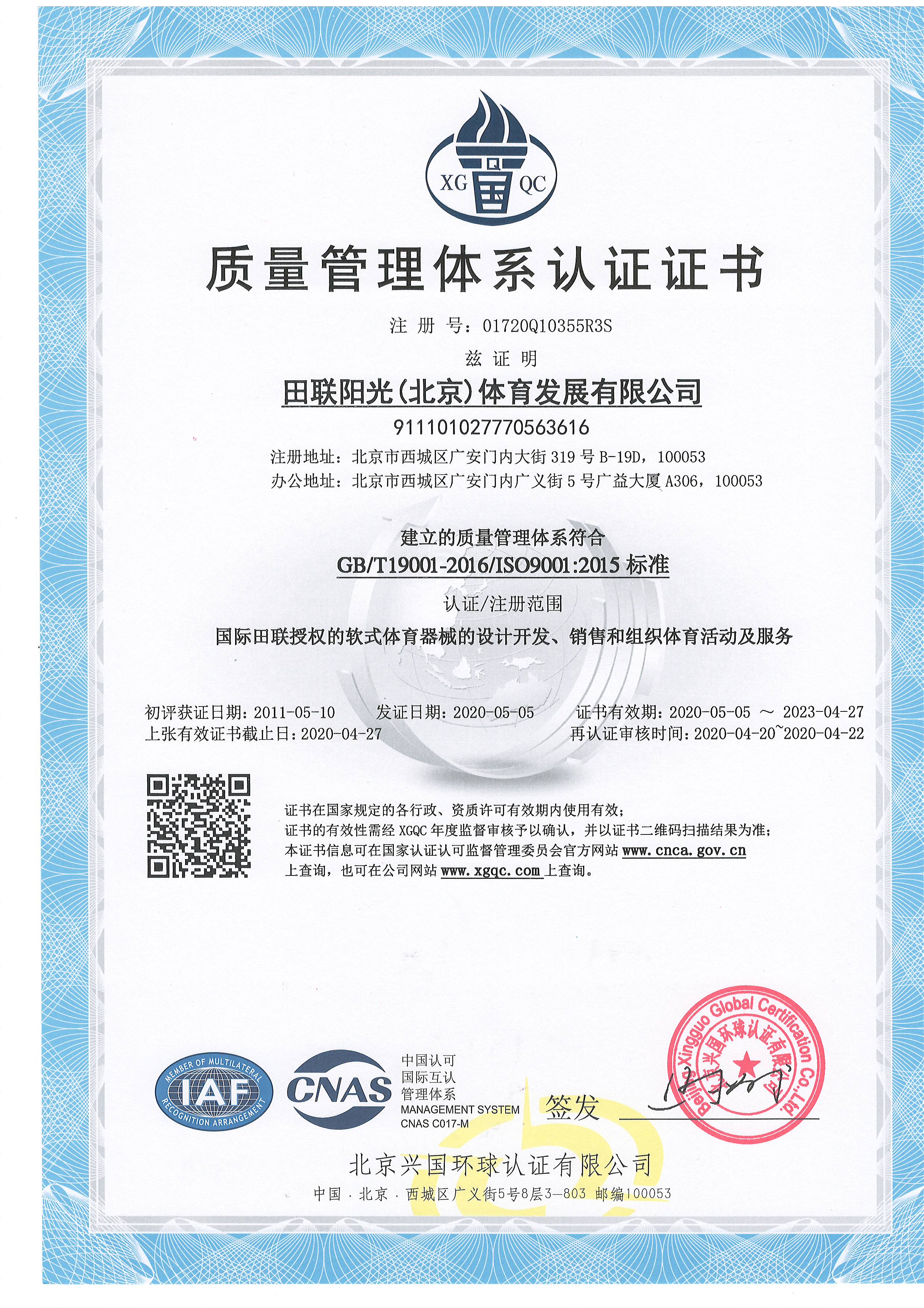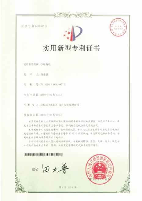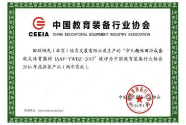 所有器材全部获得国家体育用品质量监督检验中心的检验合格证书;是教育部教育装备研究与发展中心监制产品;并获得国家专利五十余项;是教育部《中小学体育器材设施配备标准》新增加要求成套配备器材;是国家体育总局《少年儿童田径竞赛指导意见》规定比赛项目;2014年南京青奥会少儿趣味田径体育启蒙活动指定器材;2015年北京国际田联世界田径锦标赛少儿趣味田径体育启蒙竞赛与比赛展示活动指定器材;并荣获中国教育装备行业协会创新奖与推荐产品。