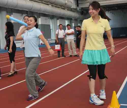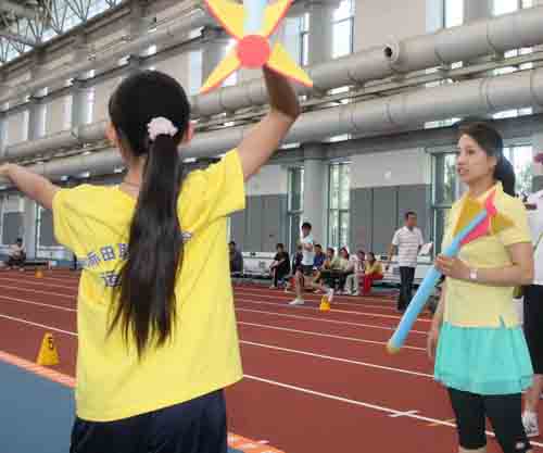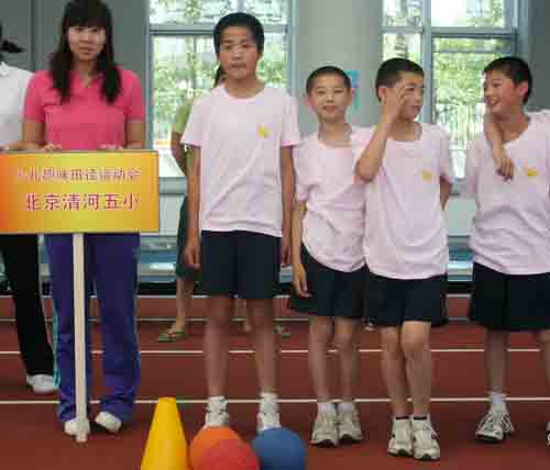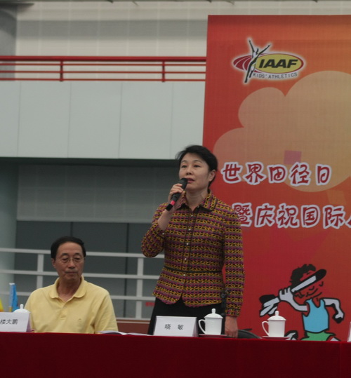 2009年5月30日在北京体育大学国家训练基地综合馆,国家体育总局局长助理晓敏女士;国际田联荣誉副主席楼大鹏先生;国家体育总局田径运动管理中心主任、中国田径协会副主席兼秘书长杜兆才先生;国家体育总局田径运动管理中心副主任、中国田径协会副主席周冰冰女士;中国田径协会青少年部主任黄炜先生;国际田联地区发展中心·北京主任、北京体育大学副校长钟秉枢先生;国际田联地区发展中心·北京副主任孙南先生;中国教育学会体育与卫生分会副秘书长、北京市中小学体育运动协会主席白荣正先生;田联阳光(北京)体育发展有限公司总经理高永强先生等领导和王丽萍、钱红、邢傲伟、莫慧兰、毕文静5位世界冠军共同参加了“世界田径日暨庆祝国际儿童节少儿趣味田径运动会”为参赛的小选手们加油助阵,和孩子们一起体验了少儿趣味田径的乐趣,共同度过了一个美好的六一儿童节。