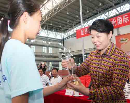 国家体育总局局长助理晓敏女士为获得前三名的队伍颁发奖杯