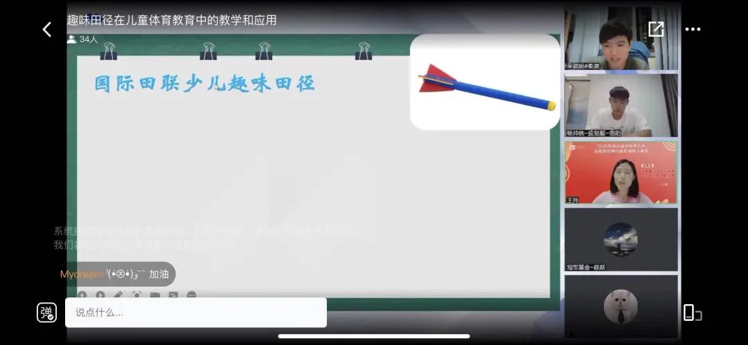 田联阳光应邀参加直播课程《趣味田径在儿童体育教育中的教学与应用》,在直播的过程中,王玮老师就趣味田径项目的起源、幼儿体育活动概述、趣味田径与教学、趣味田径与竞赛 等四个方面给运动员及各位老师做了详细的讲解。