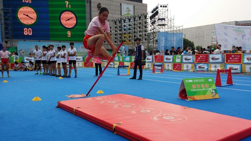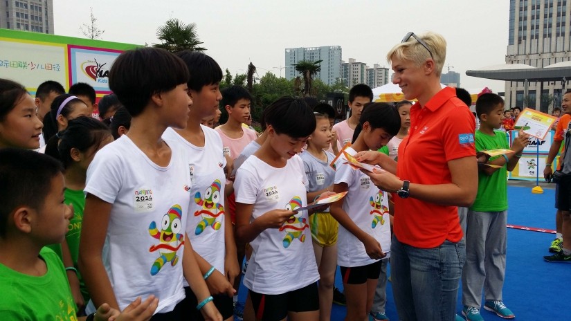 跳高名将卡杰萨·贝格圭斯特为亚军队颁奖