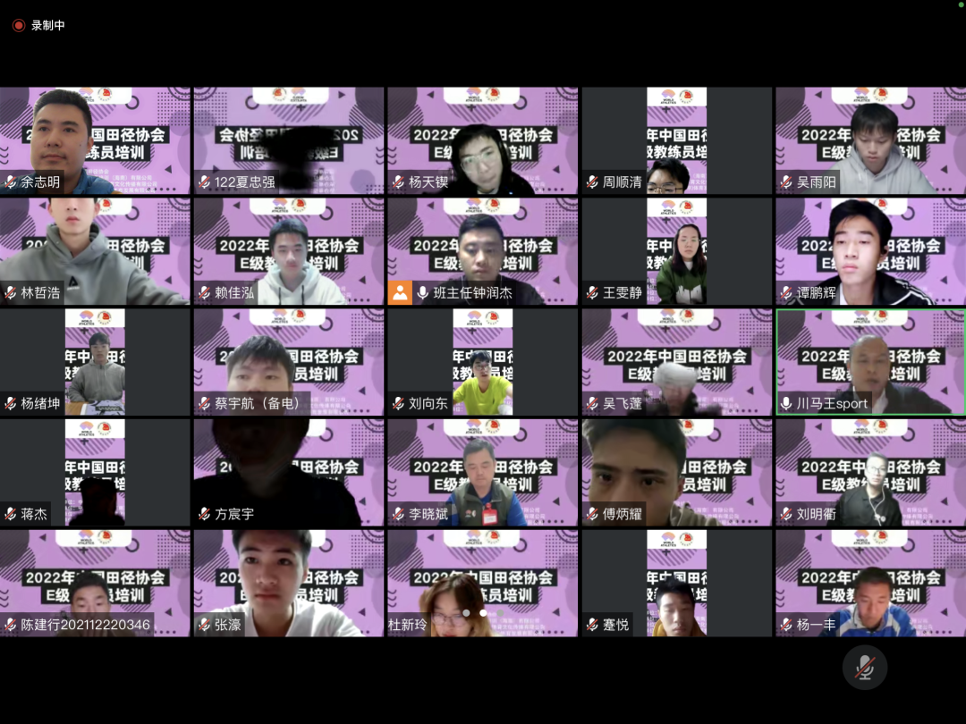 2022年11月12日上午,中国田径协会E级教练员培训班(四川成都)经过认真筹备、精心组织正式开班。本次参培学员一共44人。开班仪式为响应防疫要求,以腾讯会议的方式举行。参加会议的领导有:成都艾普佳体育文化传播有限公司总经理王斌斌先生;世界田联少儿田径讲师、田径*********裁判、中国田径协会E级教练员讲师李晓斌老师。