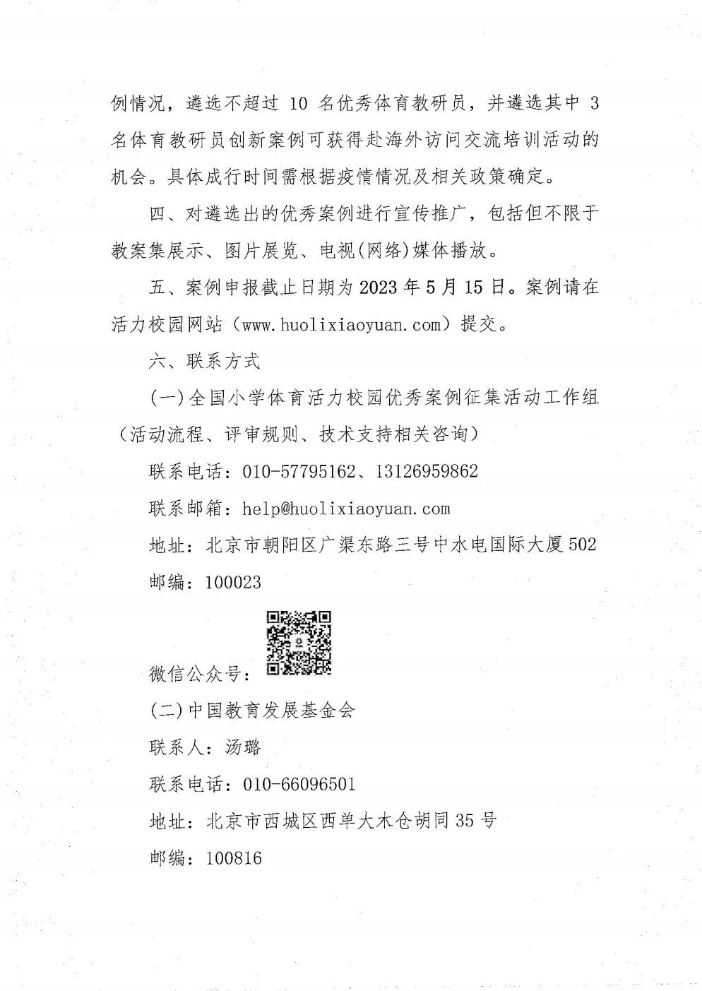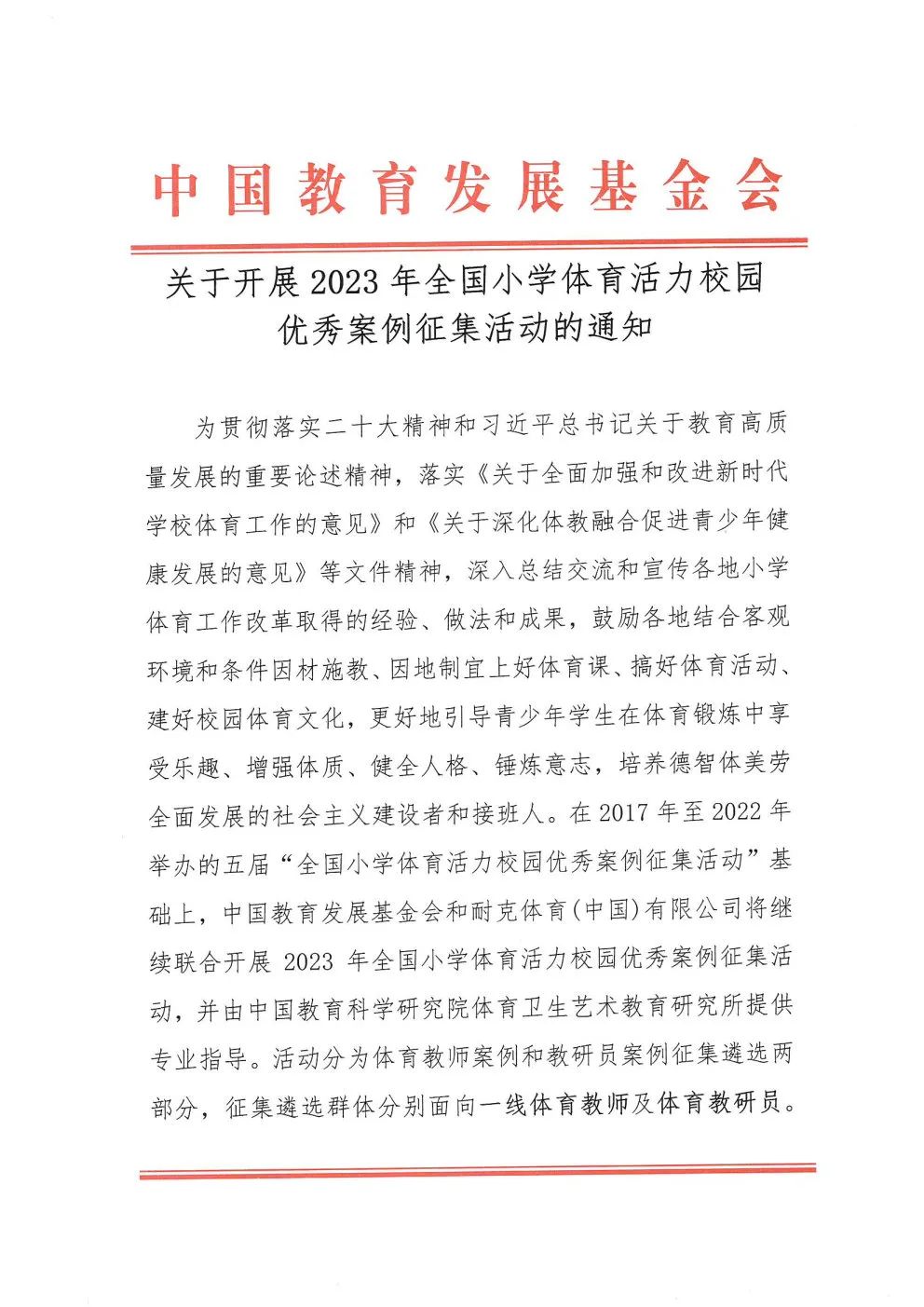 3月20日,2023年(第六届)活力校园优秀案例征集活动开始申报。活力校园案例申报分为体育教师案例征集和体育教研员案例征集遴选两部分,征集遴选群体面向全国一线小学体育教师及全国体育教研员。