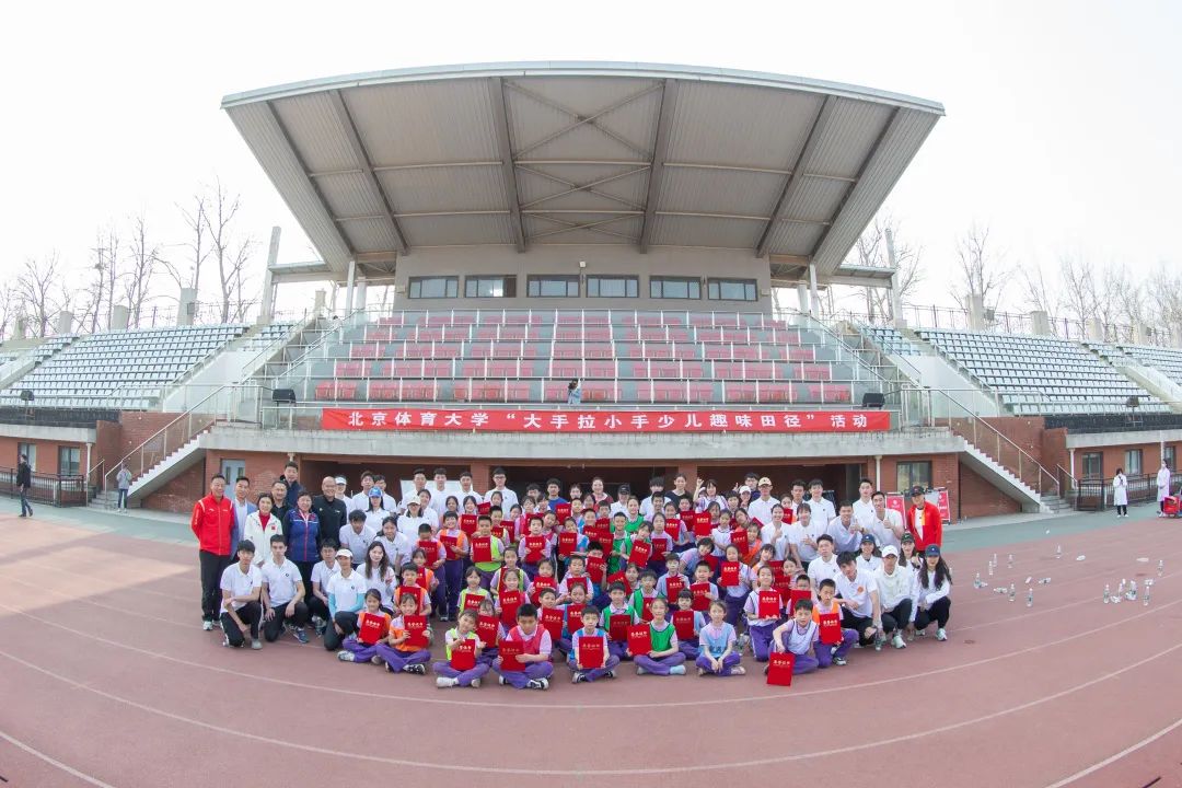 为迎接61届首都高校田径运动会在我校举办,北京体育大学在英东田径场举办了“大手拉小手,体育伴我行”少儿趣味田径活动。在中国田径运动学院学院教师和36名学生裁判员的指引下,清华附中上地小学64名小学生运动员在运动场欢聚,开展阳光体育运动。