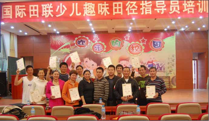 11月12日“国际田联少儿趣味田径指导员培训班”在具有八十多年历史的福州市马尾区实验小学成功举办,由来自北京体育大学章教授和田联阳光高主任主讲,马尾区的十六名体育老师和福州市各区教委体育工作者参加培训,并获得由中国教育学会体育专业委员会、中国田径协会和国际田联地区发展中心·北京联合颁发的《国际田联少儿趣味田径指导员》证书。