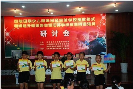 为了推动国际田联少儿趣味田径项目的实验教学和课题研究,2010年6月14日上午, 国际田联少儿趣味田径实验学校授牌仪式和课题开题报告会在江苏省南通师范第二附属小学举行,会议由江苏省教研室孟文砚同志主持。