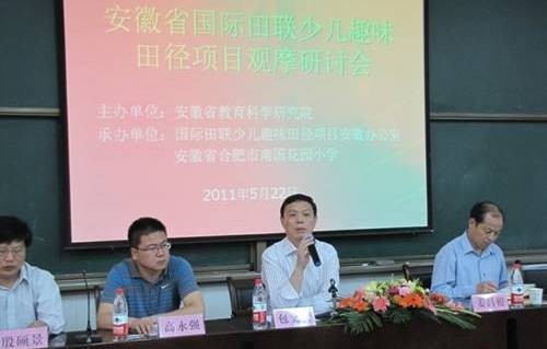 2011年5月22日上午,“国际田联少儿趣味田径项目观摩研讨会”在安徽省首批“国际田联少儿趣味田径实验学校”合肥市庐阳区南国花园小学胜利召开,参加会议的有安徽省教育科学研究院副院长包文敏、国际田联地区发展中心·北京青少部主任高永强、合肥市教育局副局长姜昌根、安徽省教科院体卫艺处主任江玲、庐阳区教育体育局副局长殷硕景在主席台就座,各市、县(区)的上百位教研员、学校校长和体育教师参会,共同探讨如何开展“国际田联少儿趣味田径目”。南国花园小学的教师和学生为与会领导和教师展示了少儿趣味田径项目生动有趣的体育教学形式,将体育教学和趣味活动融为一体,令所有的参会人员耳目一新。安徽卫视、合肥电视台、新安晚报、安徽商报等省级媒体积极报道,活动受到了与会领导和教师的一致肯定和好评。