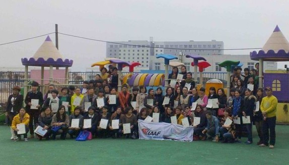 为深入贯彻落实《中共中央 国务院关于加强青少年体育增强青少年体质的意见》(中发〔2007〕7号)和《国务院办公厅转发教育部等部门关于进一步加强学校体育工作若干意见的通知》(国办发〔2012〕53号)精神,推动田径运动发展,提高少年儿童身体素质,培养少年儿童对田径运动的兴趣,日前,国际田联少儿趣味田径项目在温州龙湾区落地并于3月28日分别在瑶溪三小和区三幼举行指导员培训。全区各小学体育老师,33所幼儿园园长、保教主任共100余人参与了此次培训,培训课程由国际田联地区发展中心·北京2位专业讲师授课,经过理论和实践学习,众学员对国际田联少儿趣味田径项目加深了了解,掌握了少儿趣味田径各类器械的使用规则和活动组织的方法,并向他们颁发了“国际田联少儿趣味田径项目指导员”证书。