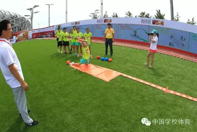 2015年北京国际田联世界锦标赛于8月22日—30日在国家体育场(鸟巢)隆重举行。鸟巢,这个承载着运动健儿梦想的福地,来自世界各地的运动员,在这里拼搏、在这里呐喊、在这里相拥庆祝,在这块福地缔造了一个又一个“神话”,在这里,中国代表队选手苏炳添以9.99秒的成绩进入了100米决赛,国人为之骄傲、为之自豪;大家还沉浸在“飞人”博尔特的速度之中……运动员的拼搏,点燃了观众的热情与激情。此时,在鸟巢旁边的绿茵场,也正在进行着一场激情不减、拼搏不减适合青少年儿童参与的“少儿田径展示比赛”活动。本届活动是由国际田联地区发展中心·北京、田联阳光(北京)体育发展有限公司主办,共有来自全国11个省22所实验学校的300余名学生参与本次活动。