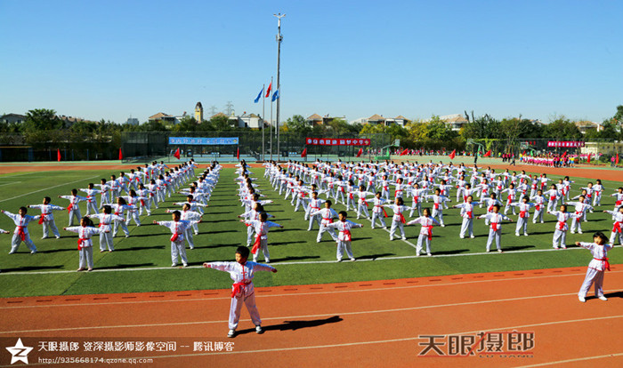 北京农学院附属小学操场上,900多名孩子快乐的表演着数百种体育课项目, 孩子们整齐划一的表演迎来现场嘉宾和观众们的阵阵掌声。
