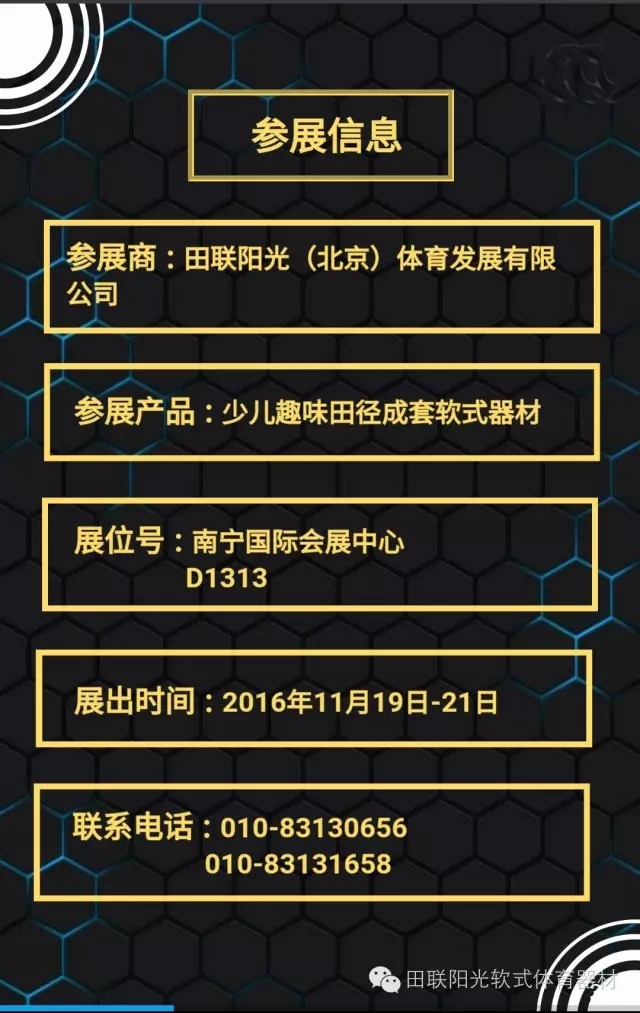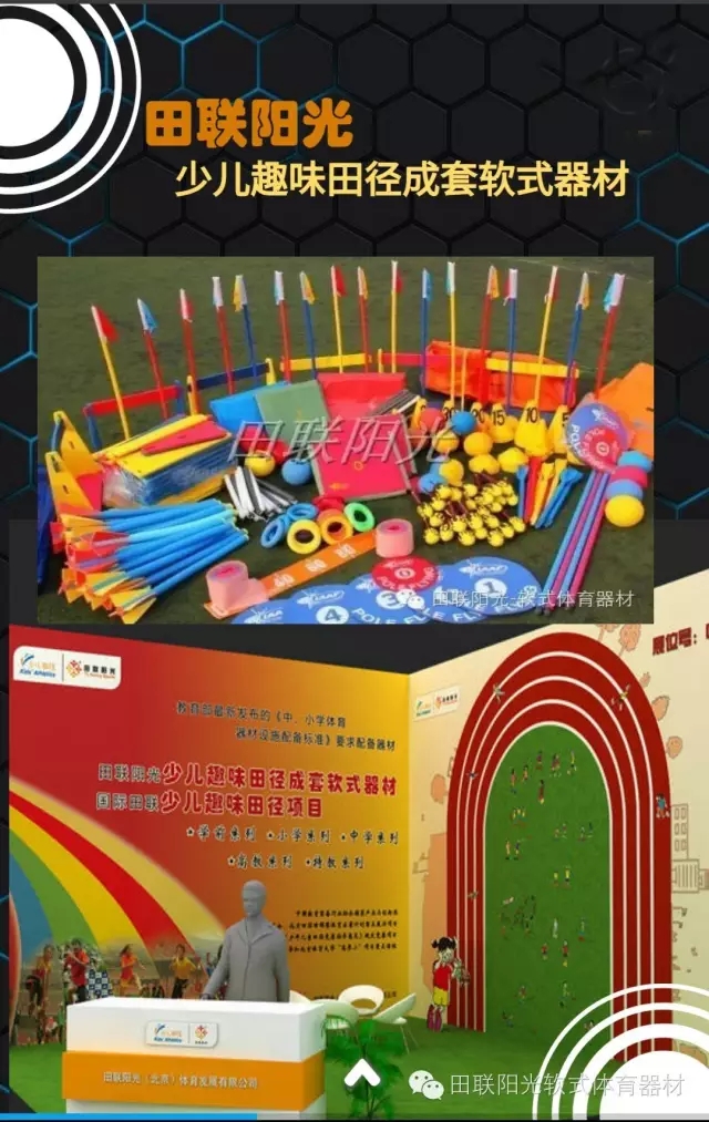 田联阳光(北京)体育发展有限公司将携教育部最新颁布的《中小学体育器材设施配备标准》要求配备器材“少儿趣味田径成套软式器材”亮相第71届中国教育装备展 ,期待您的莅临参观!