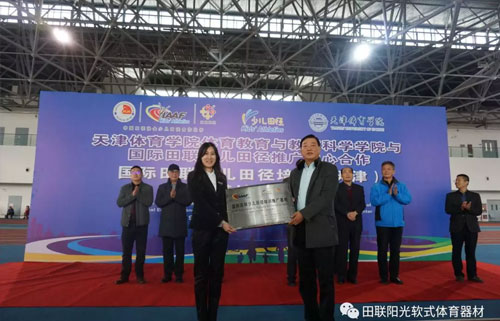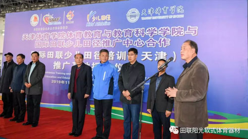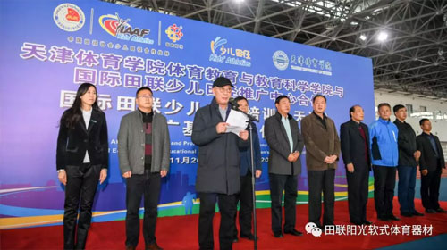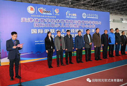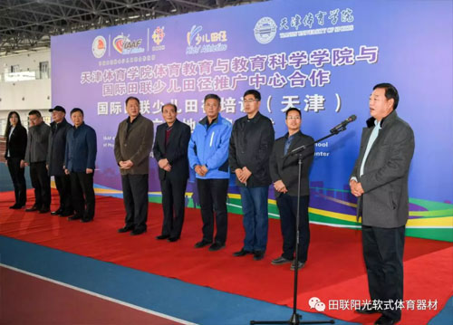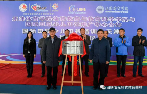 国际田联少儿田径推广中心与天津体院体育教育与教育科学学院合作,建立国际田联少儿田径培训(天津)推广基地授牌仪式于2019年11月20日在天津体院田径馆举行。出席授牌仪式的有天津市体育局副局长王路华,天津市田径运动管理中心主任张学军,天津市学生体育协会会长焦春生,国际田联地区发展中心·北京执行主任孙南,国际田联少儿田径中国区推广中心主任高永强,天津体育学院党委副书记、院长吉承恕,副院长刘志云,以及教学党总支,体育教育与教育科学学院负责人,田径游泳教研室全体教师,研究生,本科生。