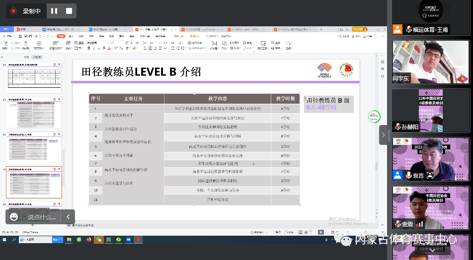 为加强我国田径教练员、体育教师和田径相关工作者的人才培养和队伍建设,提高教练员的基础理论水平和综合执教能力,为社会培养更多高水平田径教练,中国田径协会于2022年在全国各地广泛开展各级别田径教练员培训及认证。本次培训是由中国田径协会进行指导,中田体育培训(海南)有限公司主办,内蒙古福运体育管理有限公司承办,田联阳光(北京)体育发展有限公司协办的在赤峰市开展的第一期中国田径协会E级教练员培训。