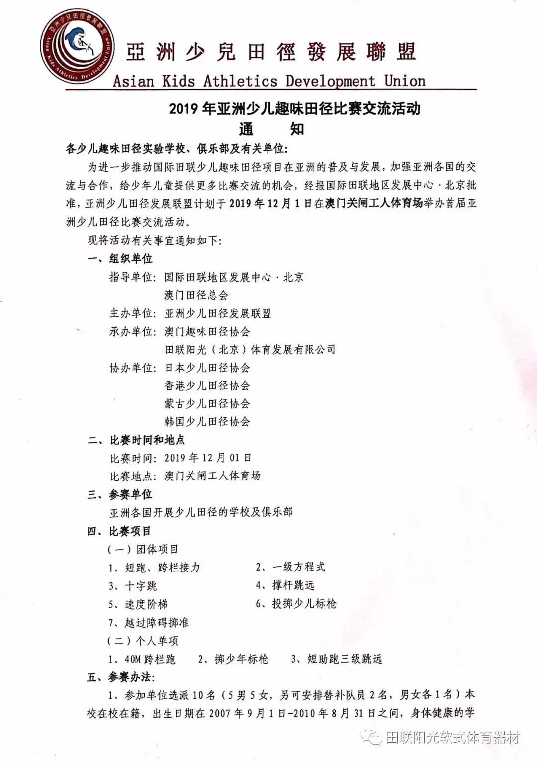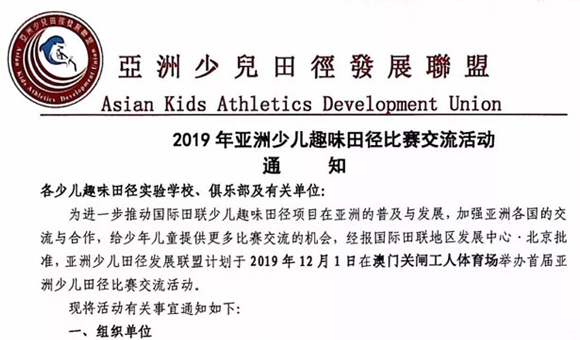 关于2019年亚州少儿趣味田径比赛交流活动的通知