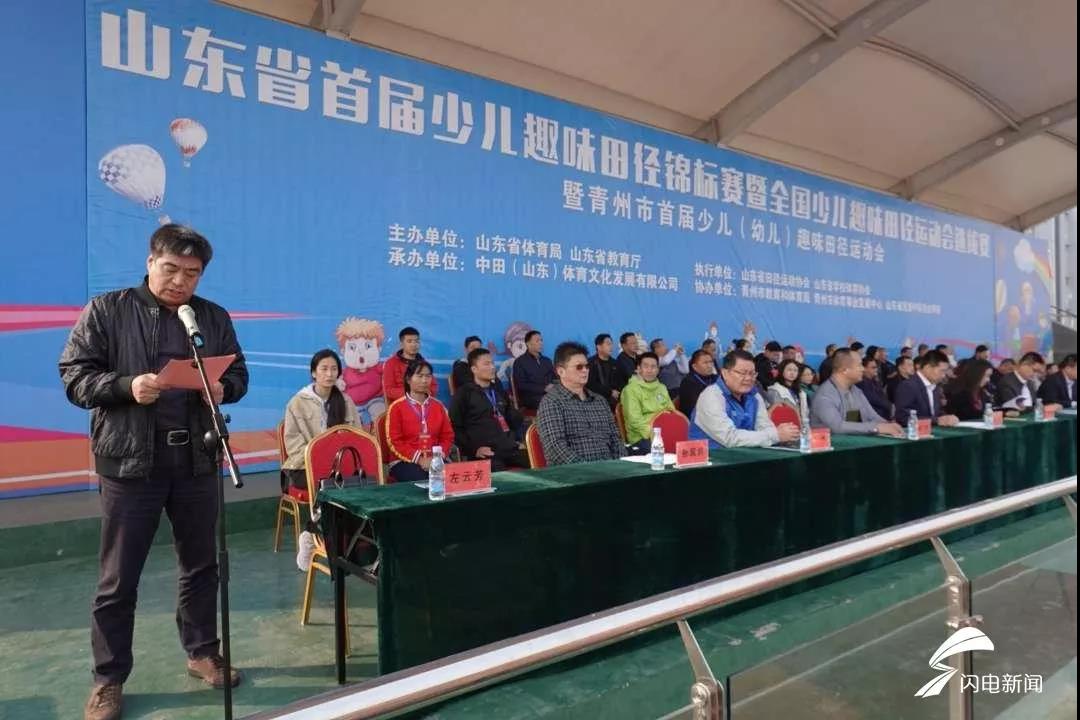 10月18日,2019年山东省首届少儿趣味田径锦标赛在青州拉开战幕。山东省体育局青少处处长宋振波、山东省体育局田管中心主任杨刚、山东省体育局青少处四级调研员王黎虹、山东省教育厅体卫艺处副处长杨文、山东省田管中心副主任潘艺鸥,山东大学体育学院副院长、山东省学校体育协会秘书长