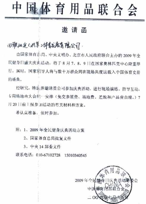首届全民健身日庆典活动邀请函