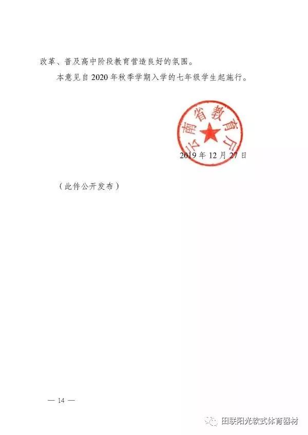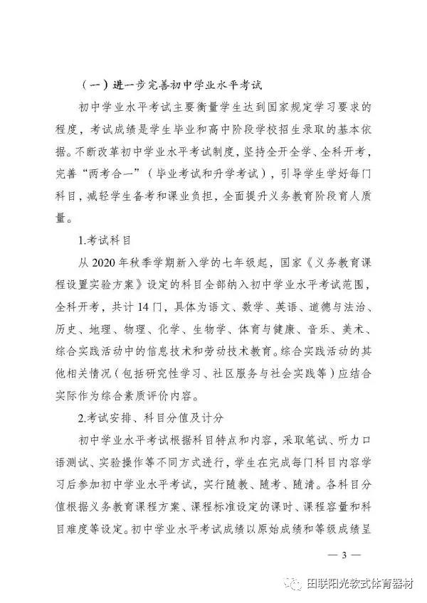 12月27日,云南省教育厅发布《关于进一步深化高中阶段学校考试招生制度改革的实施意见》。从2020年秋季学期入学的七年级学生起,我省中考将实行新政。国家《义务教育课程设置实验方案》设定的科目全部纳入初中学业水平考试范围,全科开考,共计14门。高中阶段招生录取总成绩以分数形式呈现,总分为700分。各学科分值也将有所调整,且物理、化学、生物学实验操作也将计入中考成绩。